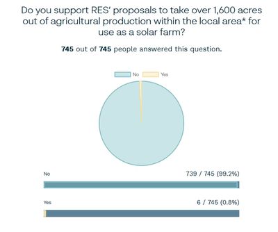 Our dedicated team spent hours distributing leaflets throughout the affected parishes and speaking to many local residents. Of the 1000 leaflets distributed, we were blown away by the response from 745 people, 99.2% (739) of respondents agree that Fields ARE for Farming.